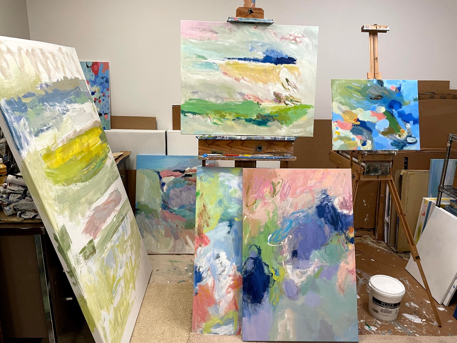 I spend more and more time painting these days, doing everything from preparing fresh canvas to photographing for this blog. Because of this, my world is constantly changing. Figuring out when I’m finished or when it’s time to set something aside and move on is always challenging. I hold the clutter at bay by constantly shuffling my work, sometimes hiding it from view to get a fresh perspective on another day.
